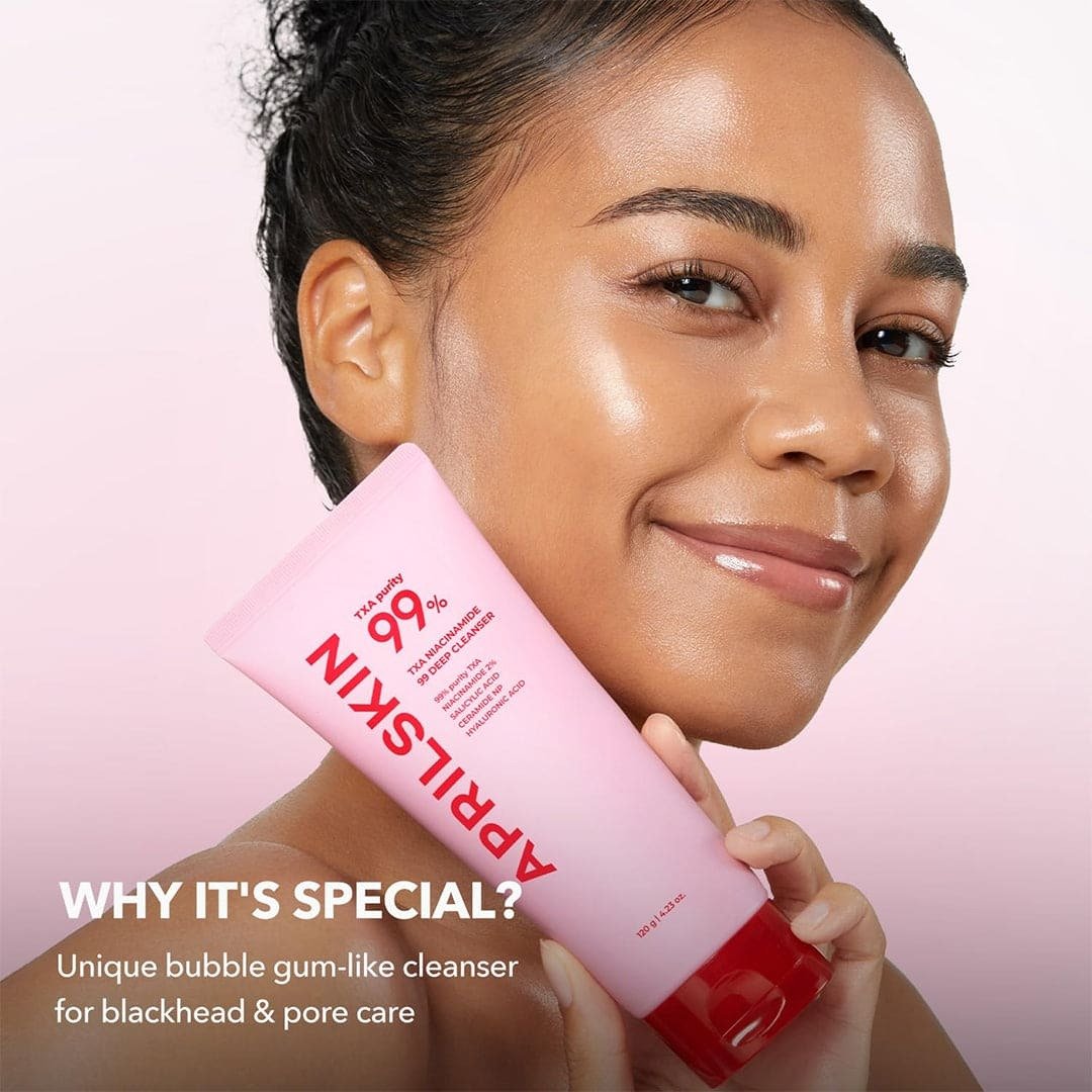 Cleanse and brighten your skin with Aprilskin TXA Niacinamide 99 Deep Cleanser, a gentle yet powerful cleanser designed to remove impurities, excess oil, and dullness while improving skin tone.