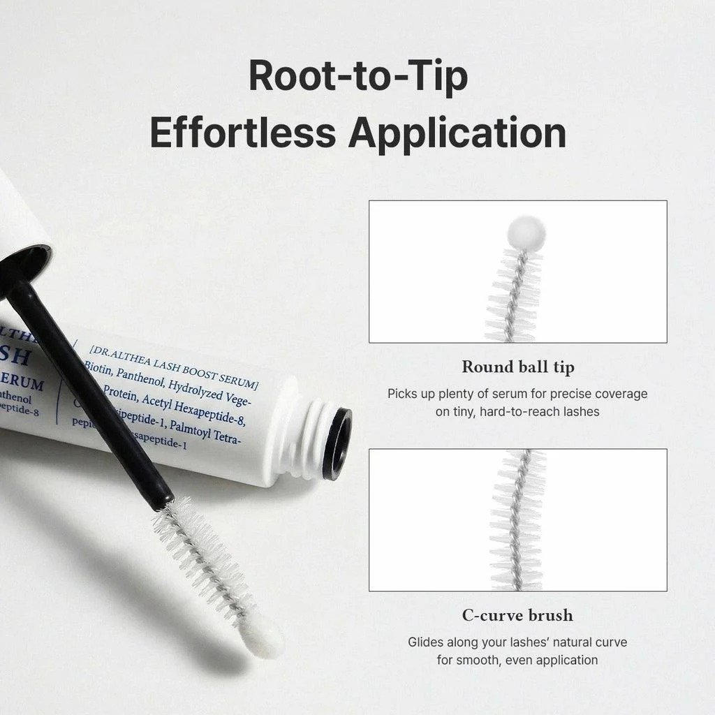 The Dr. Althea Eye Lash Boost Serum is a lightweight peptide-based lash treatment designed to help strengthen weak lashes, reduce breakage, and improve the overall look of length, thickness, and density over time. It is formulated as a gentle water-gel serum, making it suitable for daily use even on sensitive eyes.