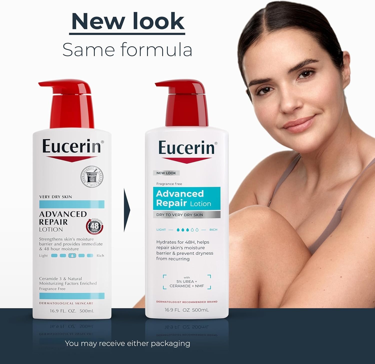Restore dry, rough skin with the Eucerin Advanced Repair Lotion, a deeply hydrating formula designed to provide long-lasting moisture and improve skin texture.