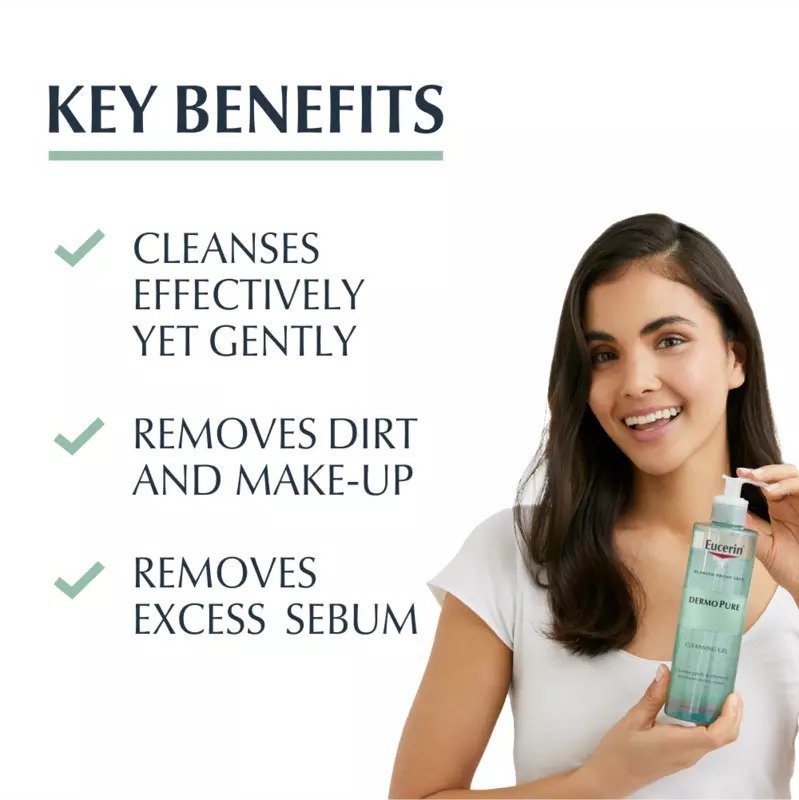 Cleanse and refresh acne-prone skin with the Eucerin DermoPure Cleansing Gel, a gentle yet effective formula designed to remove excess oil, dirt, and impurities without drying out the skin.